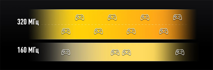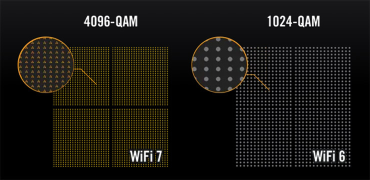 Також Wi-Fi 7 забезпечує приріст продуктивності у кожному з діапазонів приблизно на 20% — завдяки модуляції 4096-QAM.