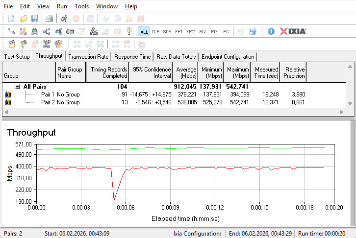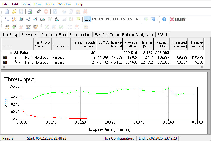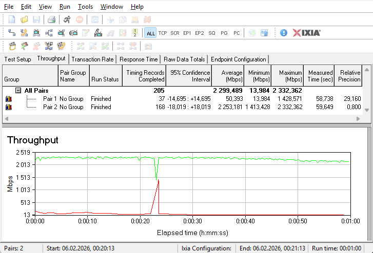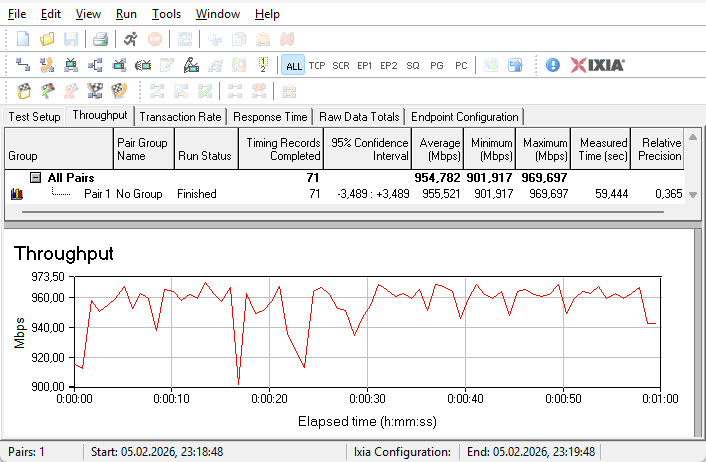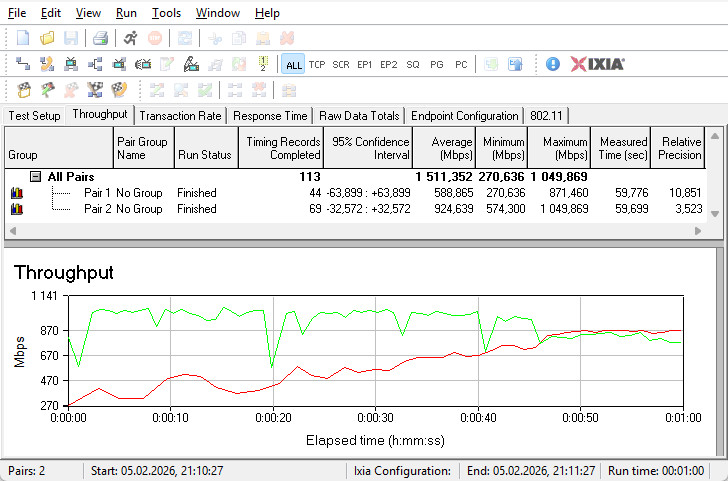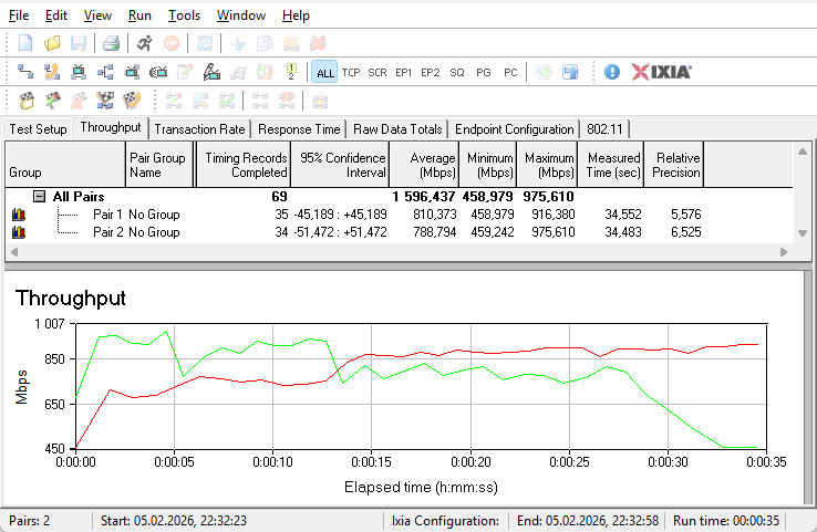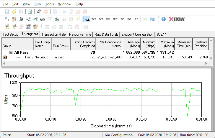 Комутатор гігабітних LAN-портів впорався зі своїм завданням на відмінно — сума середніх швидкостей у двох напрямках досягла майже 2300 Мбіт/с.