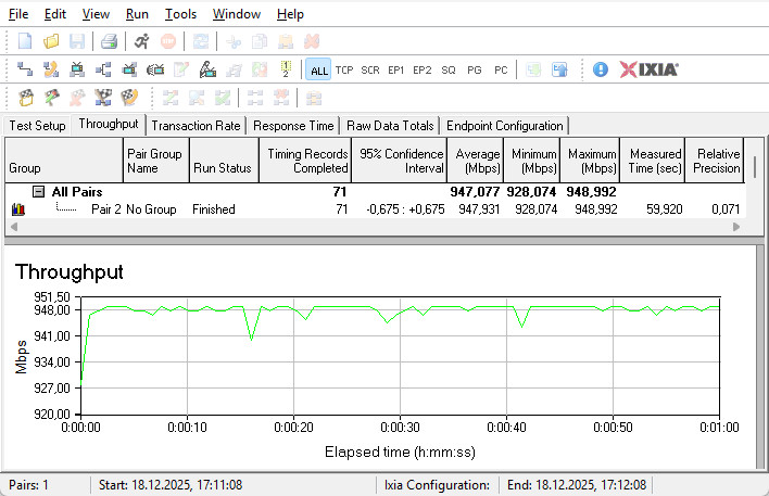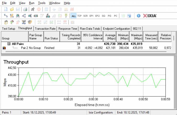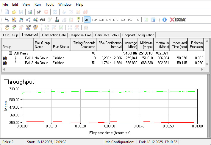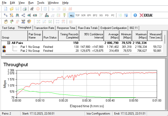 В більш продуктивному діапазоні 5 ГГц сума середніх швидкостей у обох напрямках також була гідною — 2007 Мбіт/с. В одному ж напрямку маємо до 1899 Мбіт/с.