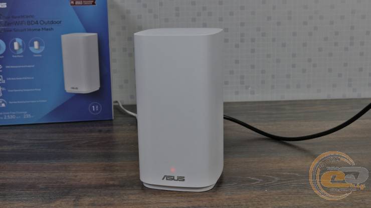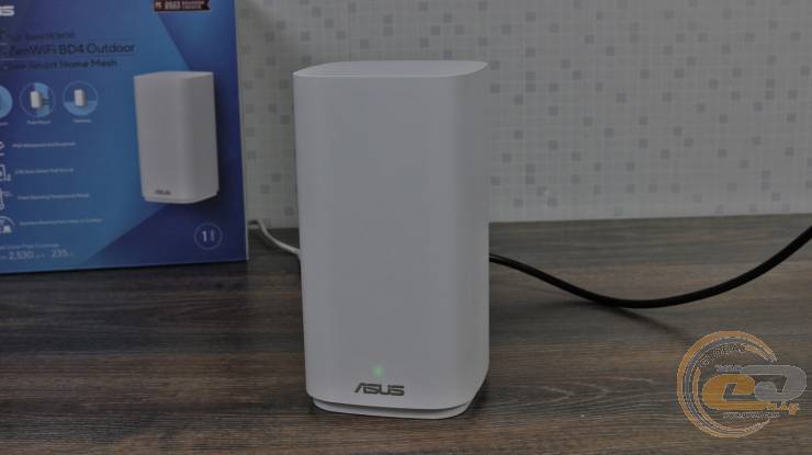 Водночас відмінностей від звичайного ASUS ZenWiFi BD4 тут більш ніж достатньо. Насамперед це значно більші габарити — 200 × 106 × 106 мм — і майже подвоєна маса, яка сягає 1040 г. Обидві особливості пояснюються тим, що блок живлення перенесено всередину пристрою, тоді як у версії без приставки Outdoor використовується зовнішнє джерело живлення потужністю 18 Вт.