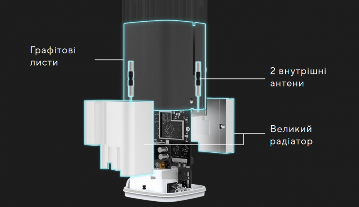 Особливості, що роблять пристрій Outdoor, полягають у його можливості працювати на вулиці. Саме тому тут з’явилася підтримка PoE, але не лише вона. Новинка відповідає стандарту IP65, що гарантує повний захист від пилу та водяних струменів під тиском, наприклад дощу або миття. Це й пояснює відсутність отворів у корпусі. Є тут також і захист від електростатичного розряду та підтримка широкого діапазону робочих температур — від -30°C до 60°C.