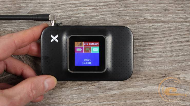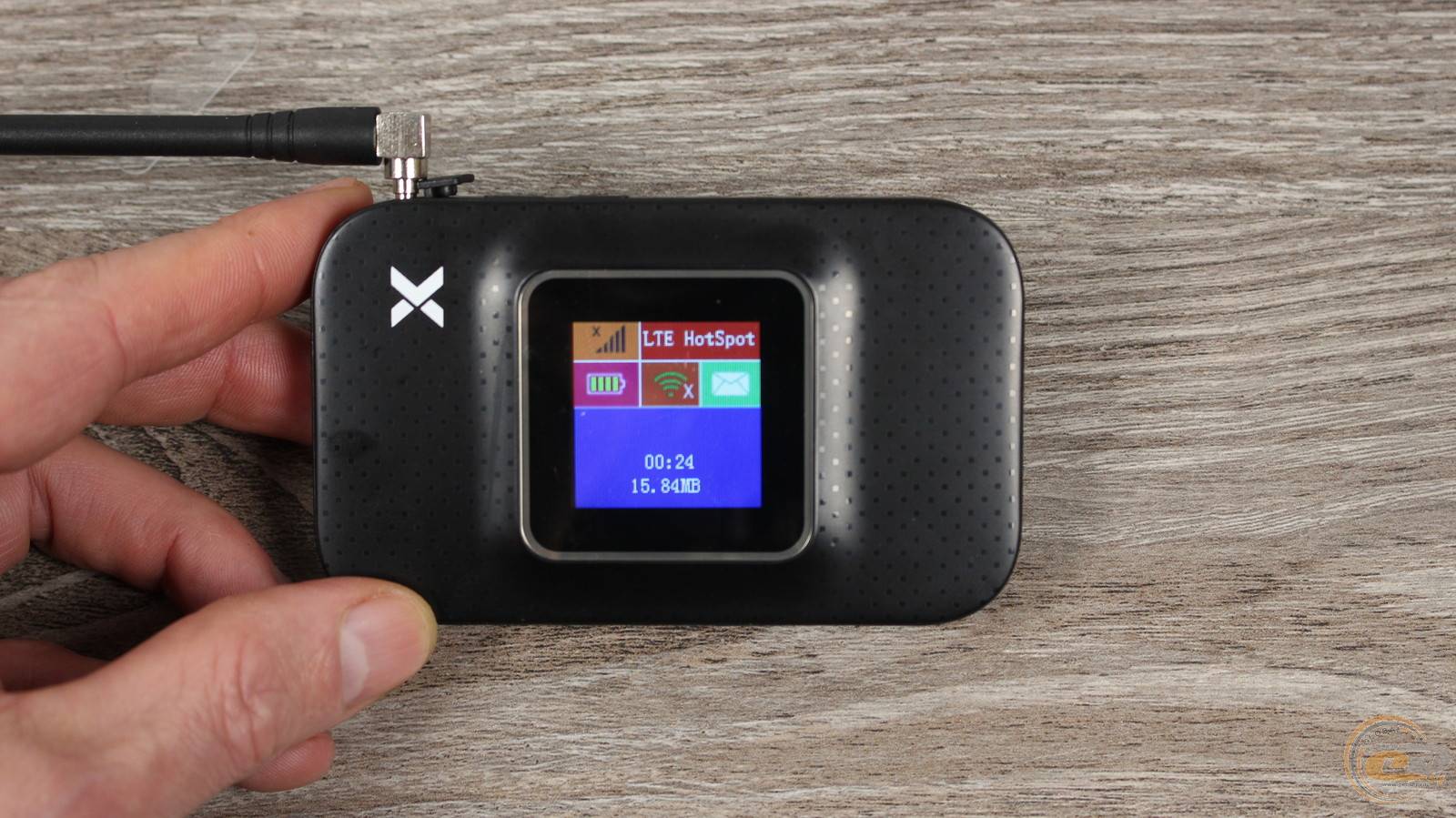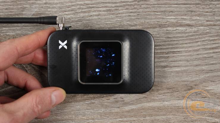 Посередині розташувався квадратний кольоровий дисплей діагоналлю 1,5" (27 × 27 мм), чого цілком достатньо щоб моніторити стан маршрутизатора. У верхній його частині відображається найнеобхідніша інформація: якість сигналу мобільної мережі, стандарт передачі даних, стан заряду АКБ, кількість під’єднаних по Wi-Fi клієнтів і наявність вхідних SMS-повідомлень.