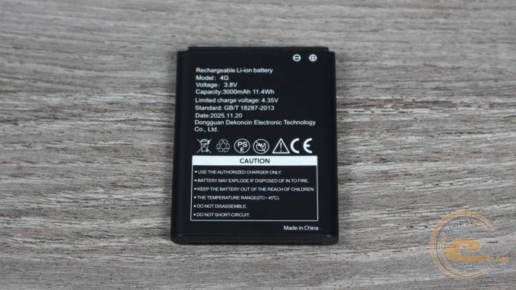 Комплектний акумулятор отримав номінальну напругу живлення 3,7 В та досить велику, як для такого пристрою, ємність 3000 мА⋅год (11,4 Вт⋅год). Щоправда, будь-яку інформацію про автономність виробник скромно замовчує.
