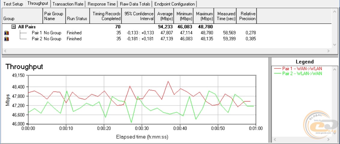 Отже, середня пропускна спроможність при передачі інформації в обох напрямках у даної моделі склала 133,4 Мбіт/с, а максимальний показник сягнув 83,77 Мбіт/с. У дорожчого конкурента середній показник трохи нижчий (128,16 Мбіт/с), зате максимальний – трохи вищий (93,68 Мбіт/с).