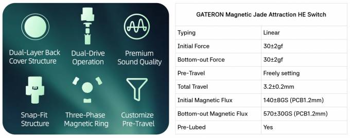 Клавіатура оснащена магнітними перемикачами CHERRY MK Crystal Magnetic та технологією тунельного магнітоопору (TMR), що забезпечує точність до 0,01 мм і надшвидкий час відгуку.