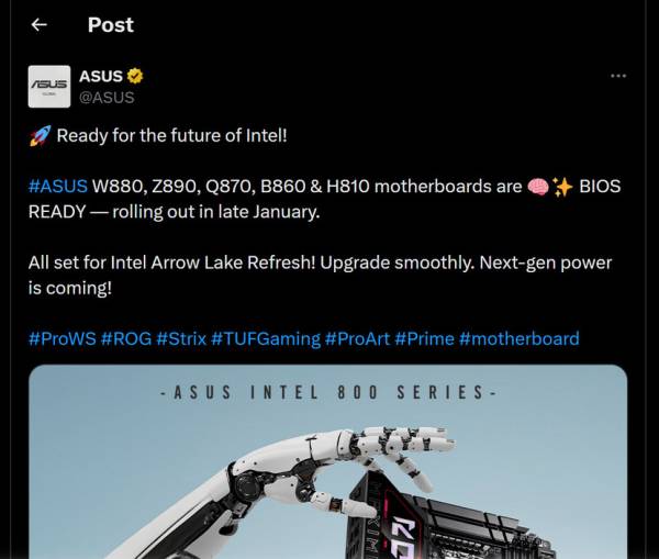 ASUS розпочала підготовку до виходу оновленої лінійки настільних процесорів Intel, відомих під кодовою назвою Arrow Lake Refresh.