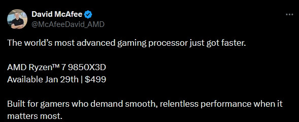 AMD офіційно підтвердила дату виходу Ryzen 7 9850X3D
