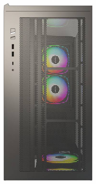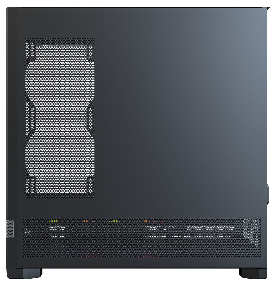 SKY 3 також спрощує складання завдяки кронштейну для приводу без інструментів та знімному верхньому кронштейну радіатора, що дозволяє монтувати систему охолодження поза корпусом. Візуально корпус вирізняється безперервною горизонтальною ARGB‑смугою, яка тягнеться від передньої панелі до боковини, створюючи єдиний світловий ефект без видимих кабелів завдяки pogo‑pin контактам.