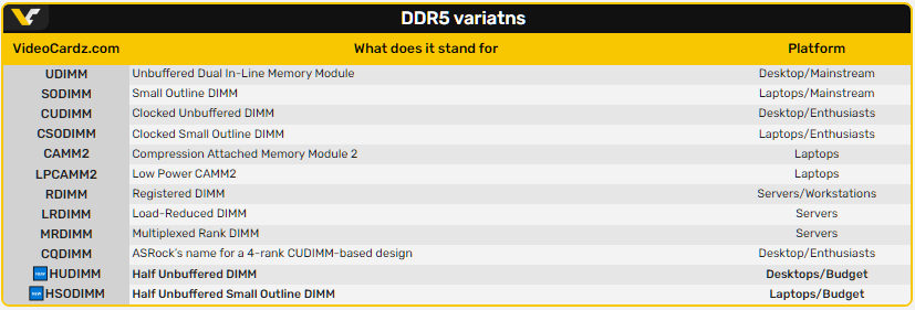 ASRock оголосила, що її материнські плати серій Intel 600, 700 та 800 тепер підтримують DDR5 HUDIMM, а компактні системи DeskMini — HSODIMM. У стандартних DDR5 UDIMM використовується архітектура 2×32‑bit, яка добре підходить для модулів великої ємності, але не завжди практична для бюджетних систем. Новий формат 1×32‑bit орієнтований на доступні рішення, де важлива ціна.