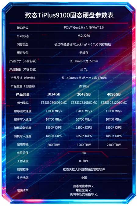Zhitai запускає SSD TiPlus 9100 PCIe 5.0 з швидкістю до 12 000 МБ/с