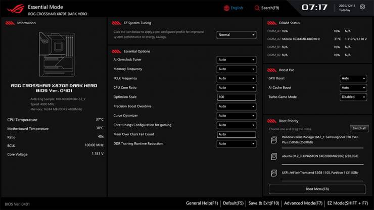 У Neo UEFI інтегровано прогресивні інструменти керування, зокрема виділені розділи для оптимізації параметрів ШІ, що відповідають за інтелектуальний розгін та динамічне охолодження. Нова оболонка пропонує логічну структуру меню та вдосконалений пошук, суттєво полегшуючи роботу ентузіастів. Завдяки використанню об’ємної флешпам’яті ASUS змогла зберегти складну графіку та розширені таблиці AGESA для стабільної роботи з модулями DDR5.