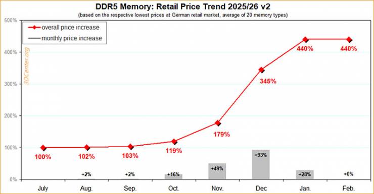 За даними індексу «кризи пам’яті» від порталу 3DCenter, саме мобільний сегмент став головним джерелом підвищення. Попит на ноутбуки та обмежена пропозиція SODIMM‑модулів призвели до дефіциту, що відобразилося на цінах. Для користувачів ПК ситуація виглядає стабільною, але власники ноутбуків отримали відчутний удар по бюджету.