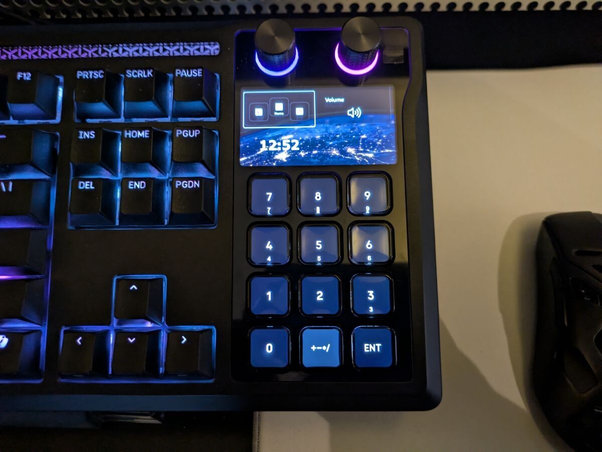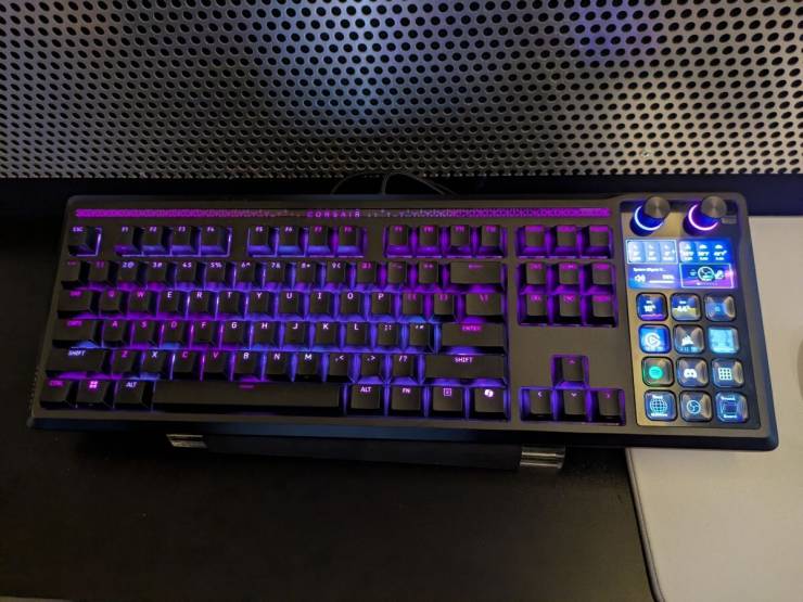 Головною особливістю моделі стала інтеграція повноцінного контролера Elgato Stream Deck безпосередньо в корпус. Замість стандартного цифрового блоку справа розміщена панель із 12 програмованими РК-клавішами, двома прецизійними органами керування та повнокольоровим екраном для моніторингу статистики. Така конструкція дозволяє стрімерам та творцям контенту керувати ефіром, перемикати сцени в OBS або редагувати відео в Premiere Pro, не відриваючи руки від клавіатури та не використовуючи Alt+Tab.