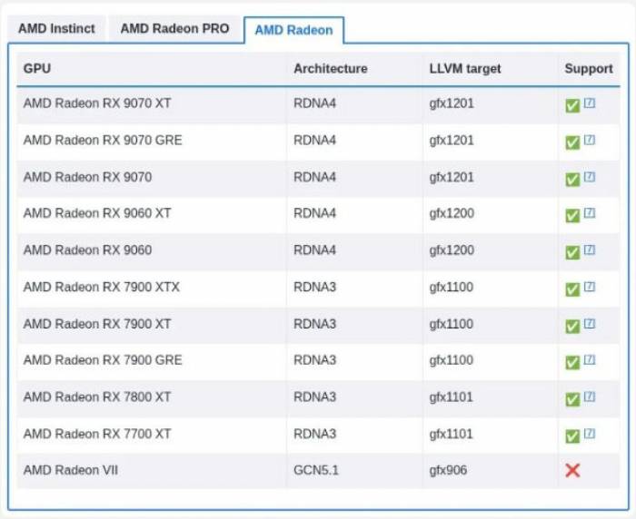 З виходом ROCm 7.0.2 офіційно підтримуються моделі Radeon RX 9060 та RX 9060 XT, які приєднуються до раніше підтримуваної серії RX 9070. Це перший випадок, коли всі поточні карти Radeon RX 9000 сумісні з обчислювальним стеком ROCm, що є критично важливим для розробників, які використовують ці GPU для завдань штучного інтелекту та машинного навчання.