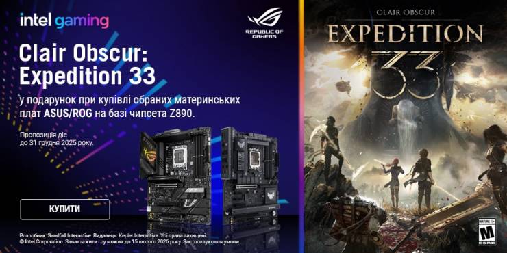 Хочете оновити свій ПК і пограти в одну з найкрасивіших ігор 2025 року? Є варіант зробити це максимально вигідно. Покупці материнських плат ASUS на базі чипсета Intel® Z890, що відповідають умовам акції, отримають код до гри Clair Obscur: Expedition 33 в подарунок.