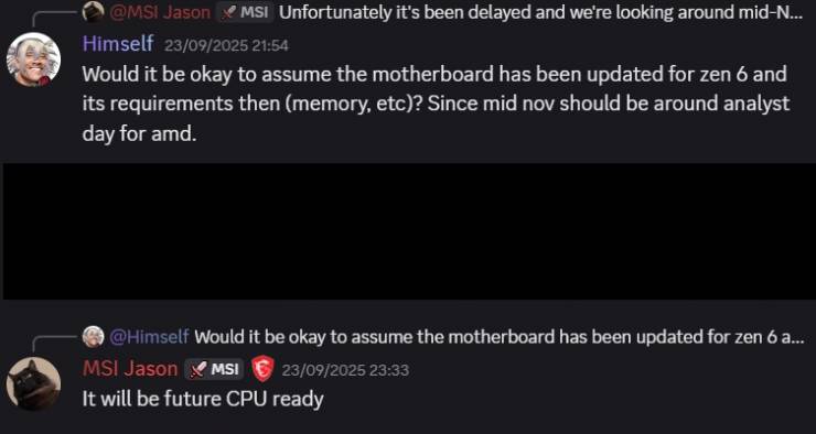 Представник компанії у Reddit підтвердив, що нові материнські плати 800-ї серії будуть «Future CPU Ready», що є першим публічним натяком на підтримку архітектури Zen 6.