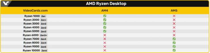 Для порівняння: сокет AM4 підтримував чотири архітектури (від Zen до Zen 3). З огляду на підтвердження від MSI, платформа AM5 підтримуватиме як мінімум три основні архітектури — Zen 4, Zen 5 і Zen 6, а також чотири серії процесорів (включно з APU Ryzen 8000).