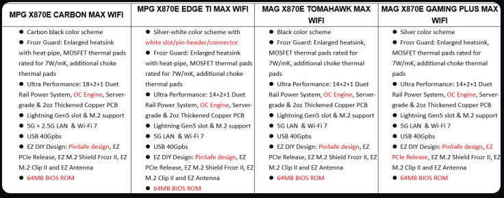 Це стосується, зокрема, нещодавно анонсованих моделей, таких як X870E Tomahawk MAX PZ та X870I TI EVO. Відповідь про «готовність до майбутнього» була надана у відповідь на питання спільноти щодо затримки випуску однієї з цих плат та її сумісності з майбутніми процесорами.