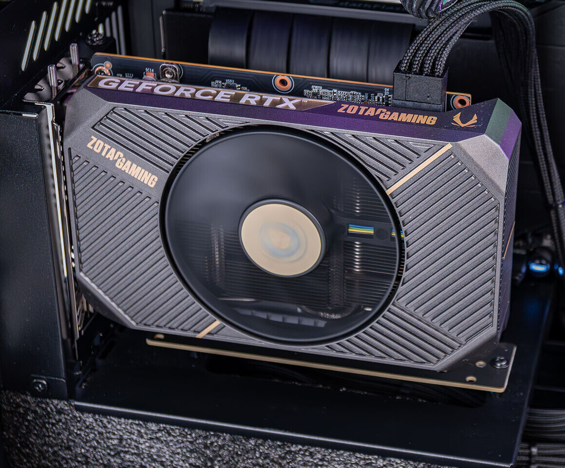 Ключовим елементом системи охолодження стала технологія WINDFORCE HYPERBURST. Вона передбачає наявність прихованого вентилятора Overdrive, розташованого в центральній частині карти. Він активується лише за сценаріїв з екстремальним навантаженням — наприклад, під час складних обчислень у сфері ШІ або в іграх із використанням DLSS 4. Це дозволяє підтримувати стабільну продуктивність без перегріву, зберігаючи при цьому акустичний комфорт у менш вимогливих завданнях.