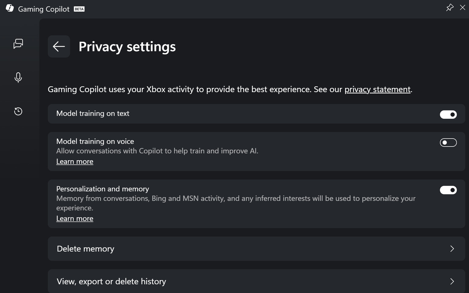 Згідно з повідомленнями ентузіастів, ШІ Gaming Copilot за замовчуванням збирає та аналізує знімки екрана користувачів, виконує на них оптичне розпізнавання символів (OCR) та надсилає витягнутий текст на сервери Microsoft для навчання своїх великих мовних моделей (LLM).