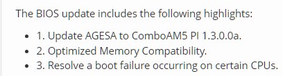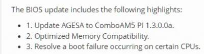 Оновлення інтегрує AGESA ComboAM5 PI 1.3.0.0a, яке AMD надала для покращення сумісності та стабільності системи.