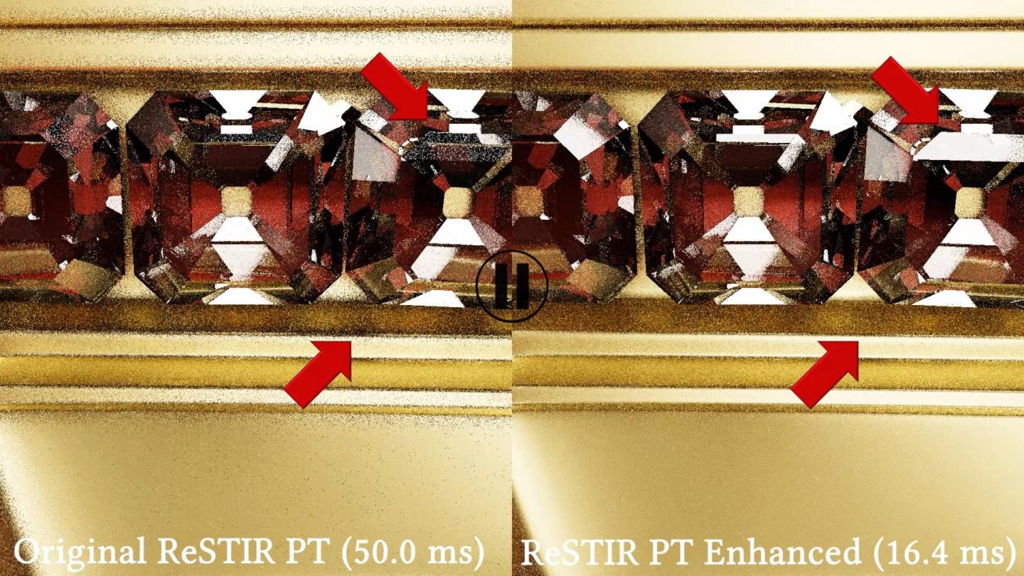 ReSTIR PT вперше був показаний у 2022 році як метод повторного використання вибірок променів між пікселями та кадрами. Це дозволяло значно зменшити кількість обчислень при рендерингу багатократних відбиттів і розсіяння світла. У новій версії Enhanced NVIDIA вдосконалила алгоритм, зробивши його більш стійким та менш затратним.
