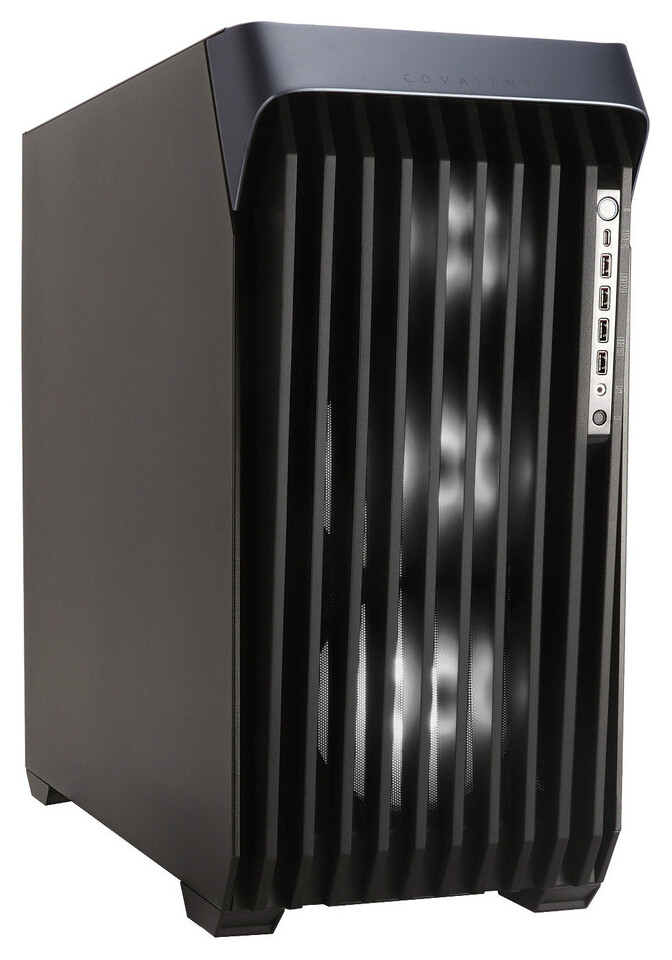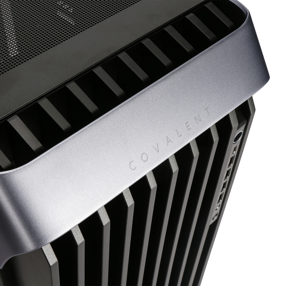 COVALENT має модульну архітектуру: знімні панелі без інструментів, окрему камеру для блока живлення, гнучку систему для накопичувачів 3,5″ та 2,5″, фронтальний порт USB 3.2 Gen 2x2 TypeC та інтегрований хаб для вентиляторів із кабельменеджментом. Це робить корпус придатним як для геймінгу, так і для професійних завдань — від відеопродакшну до фінансових обчислень.
