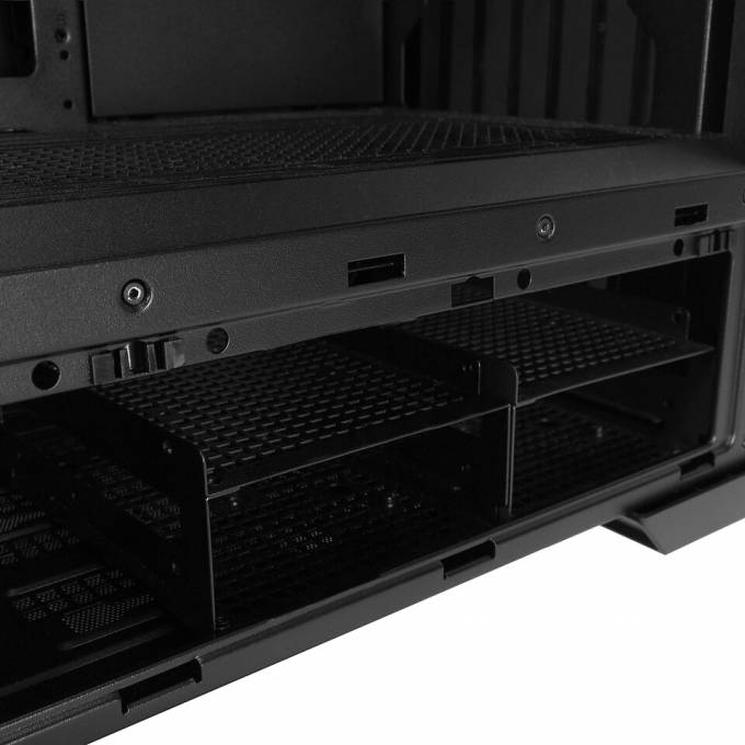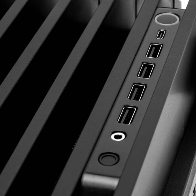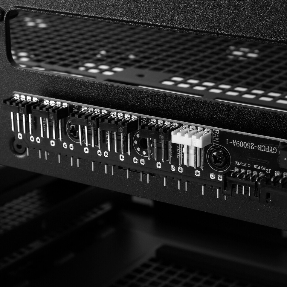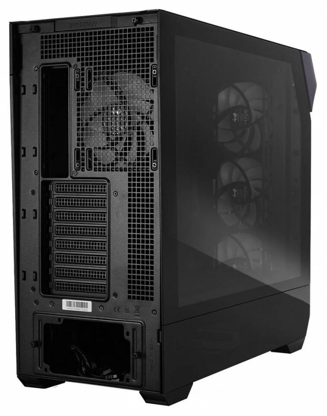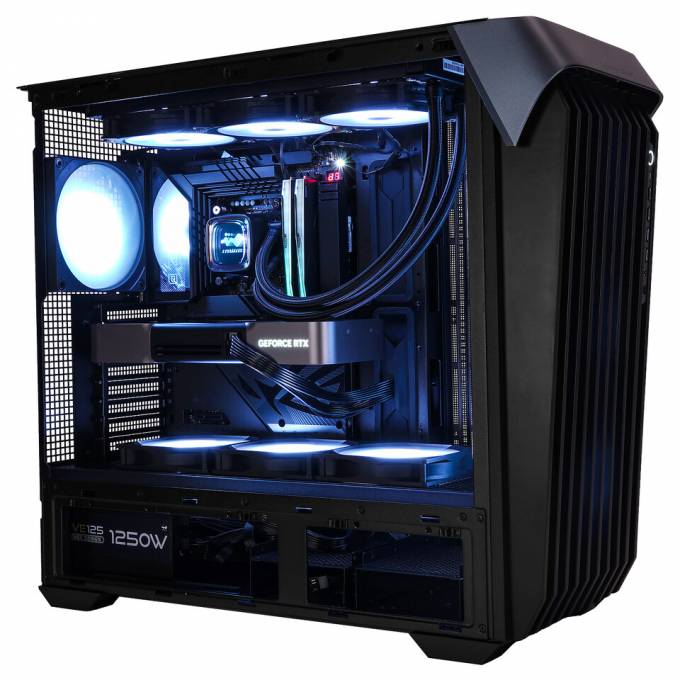 Корпус доступний у двох версіях — зі скляними або металевими панелями. Скляна модифікація підкреслює внутрішні компоненти та ARGBпідсвітку, тоді як металева забезпечує стриманий вигляд і підвищену термостійкість. Вісім слотів PCIe дозволяють монтувати відеокарти як горизонтально, так і вертикально, а додаткові кріплення гарантують стабільність при тривалій роботі.