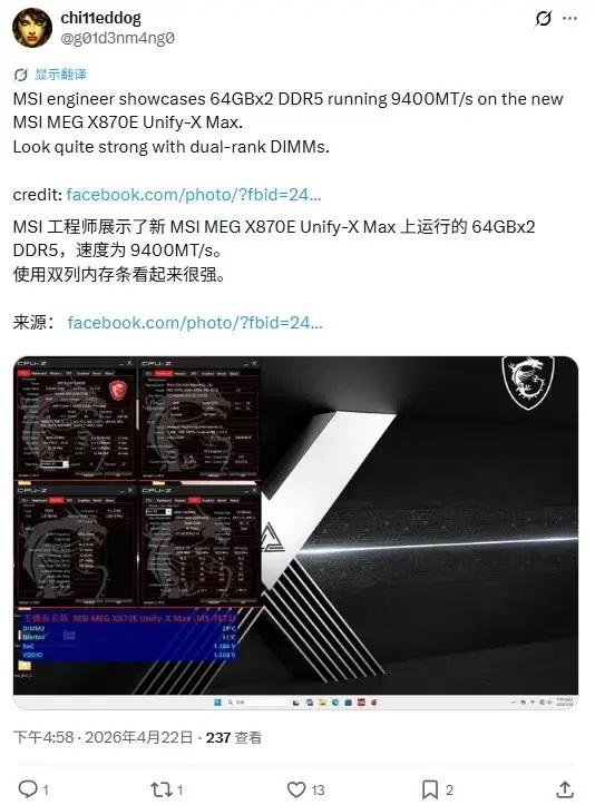 MSI продемонструвала розгін 128 ГБ DDR5 до 9400 MT/s на платформі X870E