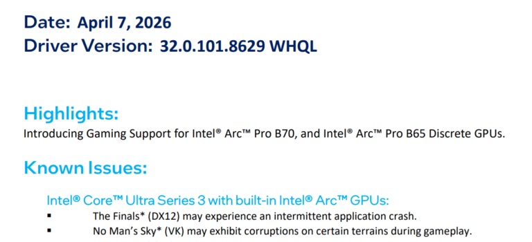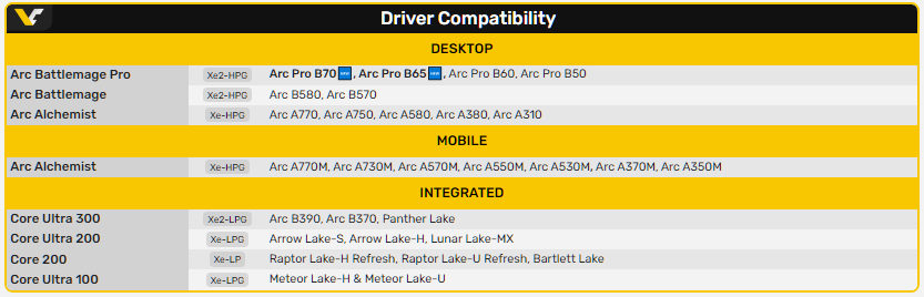 Оновлений пакет драйверів зосереджений на підтримці нових дискретних графічних процесорів Arc Pro B70 та Arc Pro B65, які базуються на архітектурі Battlemage.