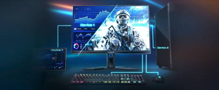 Крім того, монітор отримав вбудований KVM-перемикач, що дозволяє працювати одразу з кількома пристроями, використовуючи одну клавіатуру та мишу. Для керування налаштуваннями доступне програмне забезпечення GIGABYTE Control Center у середовищі Windows.