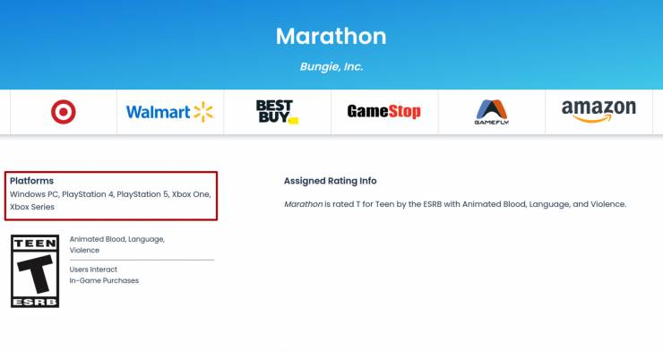 Згідно з новим записом у базі ESRB, шутер Marathon від Bungie може з’явитися не лише на ПК та сучасних консолях PlayStation 5 і Xbox Series XS, але й на PlayStation 4 та Xbox One.