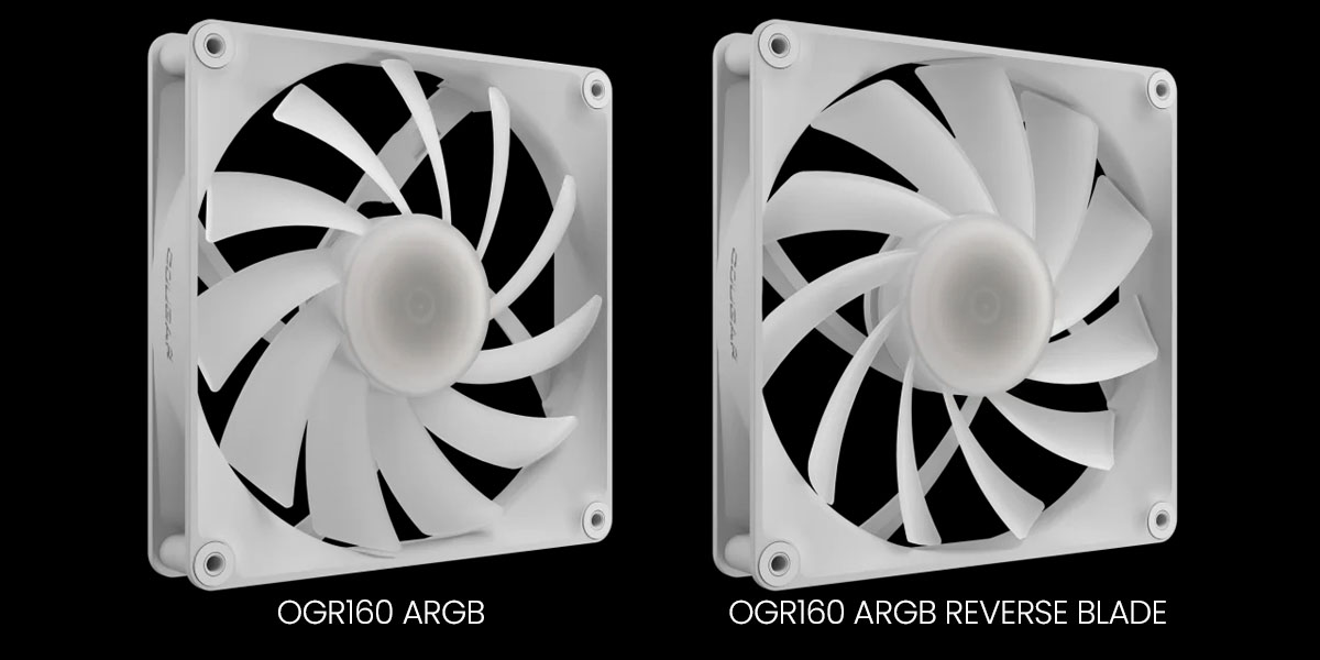 Нові моделі включають стандартний 160‑міліметровий вентилятор OGR160 ARGB, його реверсивну версію OGR160 ARGB REVERSE BLADE з лопатями, що працюють у протилежному напрямку, а також 180‑міліметровий варіант COUGAR CGR180 ARGB.