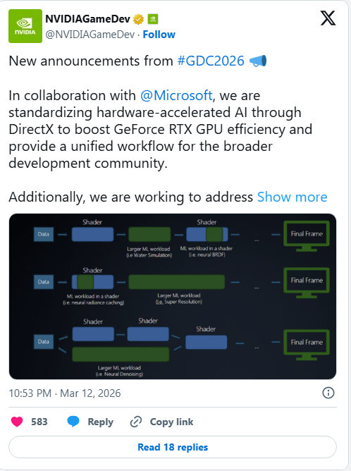 На конференції GDC 2026 Microsoft підтвердила співпрацю з NVIDIA та Intel над новою системою доставки шейдерів.