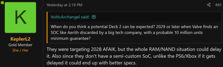 Попри ризики, пов’язані з дефіцитом пам’яті, аналітики прогнозують, що саме до 2028 року ситуація на ринку DRAM і NAND може стабілізуватися, що збільшує шанси на своєчасний запуск Steam Deck 2.