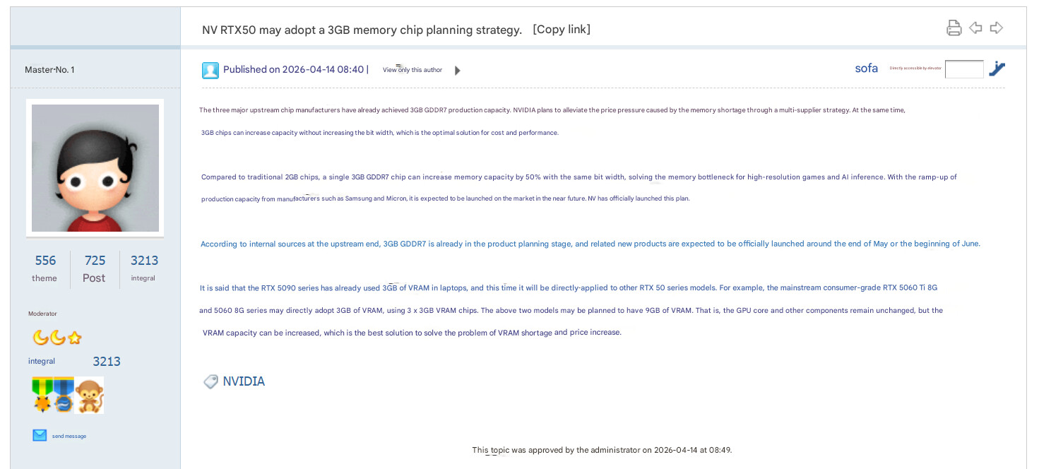 Перехід від 128‑бітної до 96‑бітної шини означає зниження пропускної здатності пам’яті, що може вплинути на продуктивність, але дозволяє зменшити витрати на DRAM та BOM. За даними інсайдера @harakuze5719, нові моделі мають з’явитися у період з травня по червень, а їхній дебют очікується на виставці Computex.