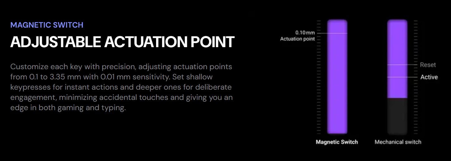 Однак Keychron замінила магнітні перемикачі Gateron Double-Rail на нові Keychron Ultra-Fast Magnetic Lime. Це легкі лінійні перемикачі (сила натискання 26-40 gf) зі стандартною орієнтацією, що робить клавіатури Q HE 8K сумісними з більшістю інших магнітних перемикачів, доступних на ринку. Нові клавіатури серії Q HE 8K працюють на базі прошивки QMK та налаштовуються й змінюються за допомогою Keychron Launcher, вебдодатку, що пропонує розширені функції, зокрема просте оновлення прошивки.