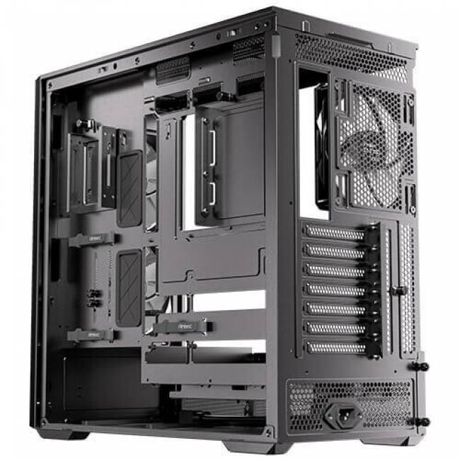 Корпус підтримує встановлення верхнього радіатора 360 мм та змінного заднього вентилятора. Він підходить для материнських плат ATX, microATX та ITX, процесорних кулерів висотою до 180 мм та відеокарт довжиною до 400 мм. Вбудований кронштейн підтримки відеокарти допомагає запобігти провисанню та покращує довгострокову стабільність. Внутрішнє планування також підтримує материнські плати із заднім роз'ємом, що забезпечує чистіше прокладання кабелів та покращений безперешкодний потік повітря.