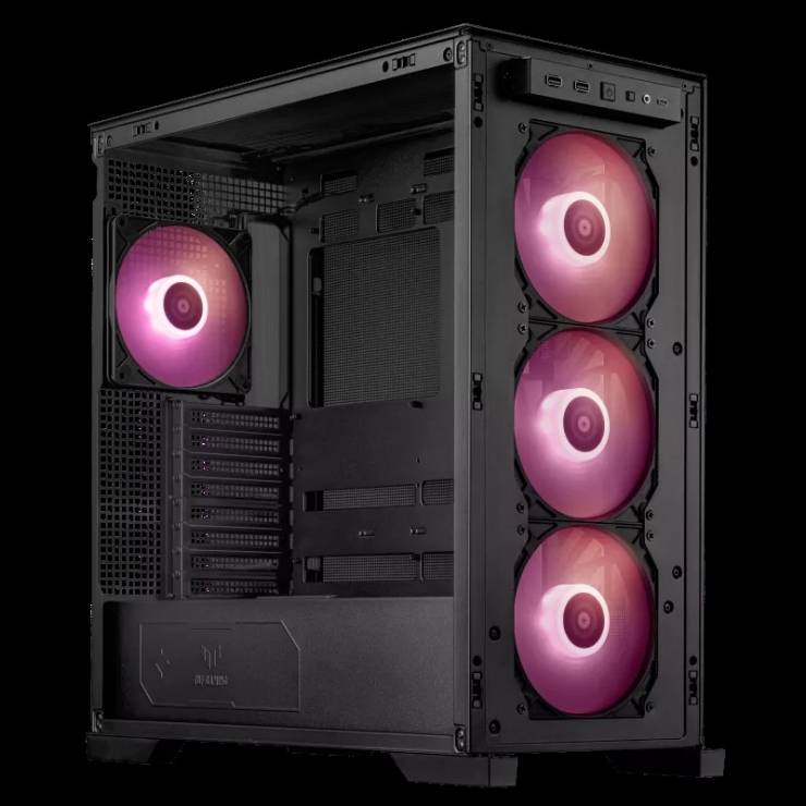 Попри свої зменшені габарити, новинка пропонує безкомпромісні можливості для охолодження, дозволяючи встановити до семи вентиляторів: три 120-мм на бічній панелі, три 120-мм (або два 140-мм) зверху та один 120-мм ззаду. Така конфігурація забезпечує потужний повітряний потік, що критично важливо для підтримки стабільної температури в продуктивних малогабаритних системах.