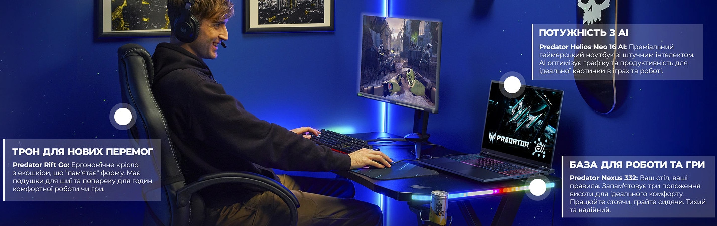 Щотижня можна виграти геймерський ноутбук, стіл або крісло Predator.