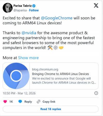 Це продовження стратегії перенесення Chrome на Arm-платформи: у 2020 році з’явилася версія для macOS на Apple Silicon, а у 2024 році — для Windows на ARM. Тепер черга дійшла до Linux, де користувачі зможуть завантажувати ARM64-бінарні пакети напряму з сайту chrome.com/download.