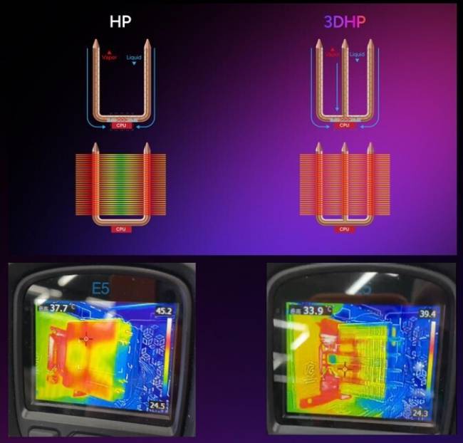 - Технологія 3DHP — запатентоване рішення для керування температурою, яке ефективно розсіює тепло та забезпечує високу продуктивність.