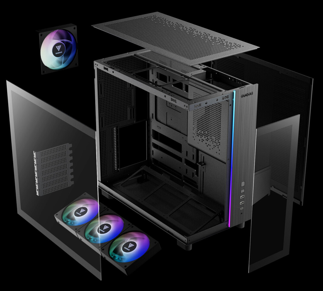 Gamdias представила панорамний корпус Atlas M4 із фронтальним блоком живлення