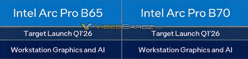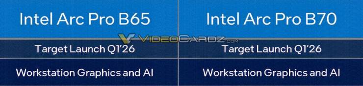 Старша модель Arc Pro B70 побудована на GPU BMG‑G31 з 32 ядрами Xe2 (4096 FP32) та 32 ГБ пам’яті GDDR6 із 256‑бітною шиною. Це удвічі більше ядер і пам’яті, ніж у попередньої Arc Pro B60. Молодша версія Arc Pro B65 отримала 20 ядер Xe2 (2560 FP32) та ті самі 32 ГБ GDDR6.