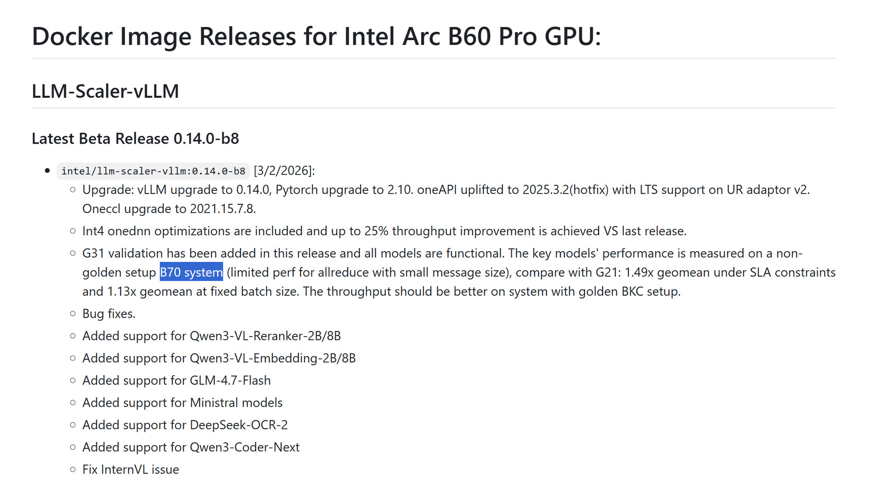 У тестах LLM Scaler Arc Pro B70 продемонструвала приріст продуктивності приблизно у півтора раза порівняно з B60, а при оптимальних налаштуваннях — близький до дворазового. Це підтверджує, що Battlemage орієнтований не лише на графіку, а й на обчислювальні навантаження, включно з AI‑моделями. Intel також згадала можливість конфігурацій із двома GPU, як у Arc Pro B60 Dual, що може ще більше розширити можливості для професійних користувачів.