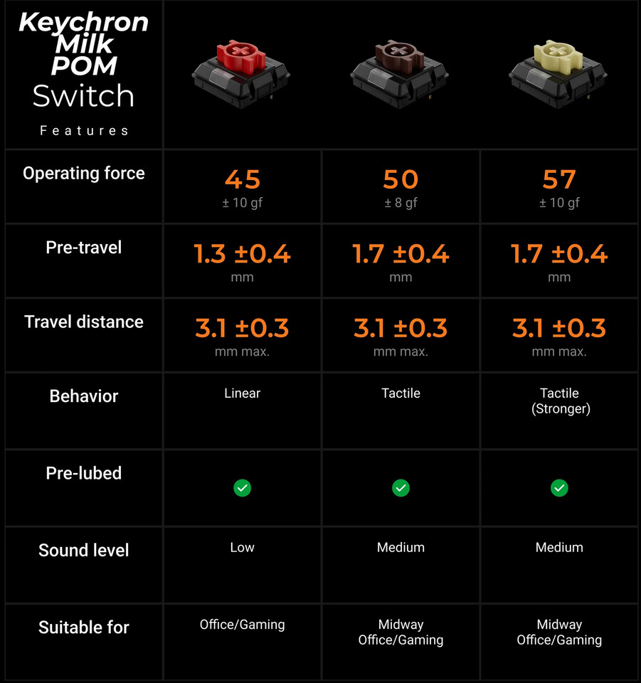 Усі інші характеристики залишилися ідентичними: алюмінієва рамка, пластиковий корпус із акцентними панелями з палісандра, ковпачки LSA з подвійною конструкцією PBT, варіанти перемикачів Keychron Milk POM (червоні, коричневі та «бананові»), а також підтримка Bluetooth 5.2, 2.4 GHz та USB‑C. K3 Max SE доступна лише у чорному кольорі.