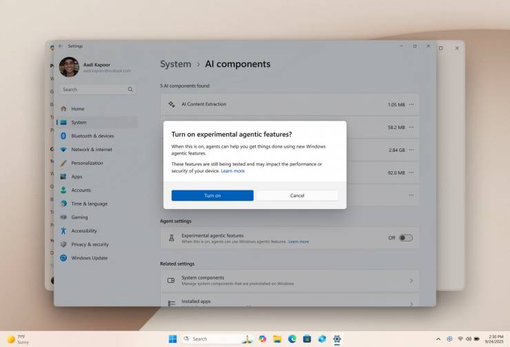 У збірці Windows 11 26220.7262 з'явився новий перемикач «Експериментальні агентні функції» в «Налаштуваннях» у розділі «Компоненти ШІ». Ця функція є додатковою і вимагає ручного ввімкнення, при якому Windows відобразить попередження про її експериментальний характер.