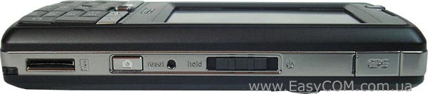 Не дуже великий, але і не дуже маленький 2.6" дисплей займає практично все вільне місце над клавіатурним блоком. Дуже цікавий і ефектний дизайнерський хід забезпечив його металевою рамкою, невеликої товщини з чорним, злегка сріблястим, рифленим покриттям.