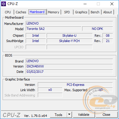 Контролер оперативної пам'яті ЦП підтримує роботу модулів стандарту DDR4-2133, LPDDR3-1866 і DDR3L-1600 у 2-канальному режимі з максимальним об'ємом до 32 ГБ. У даному випадку встановлено два модулі по 4 ГБ стандарту DDR4-2133.