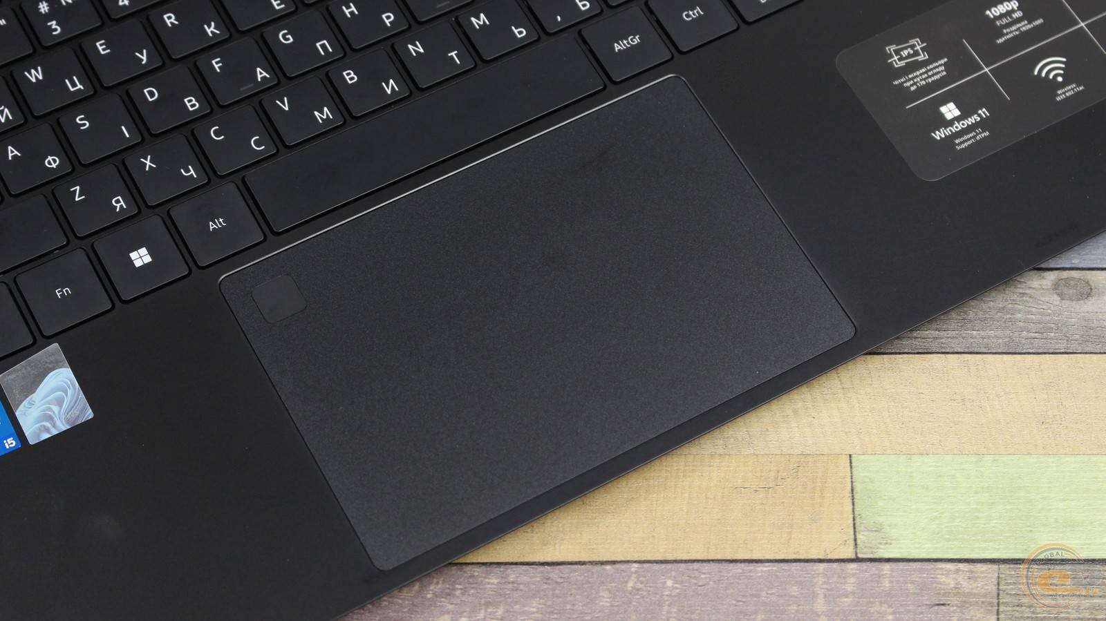 Тачпад має великі габарити — 133 × 87 мм, а дещо шершава поверхня забезпечує плавне ковзання. Є тут і сканер відбитків пальців із високою швидкістю спрацьовування.